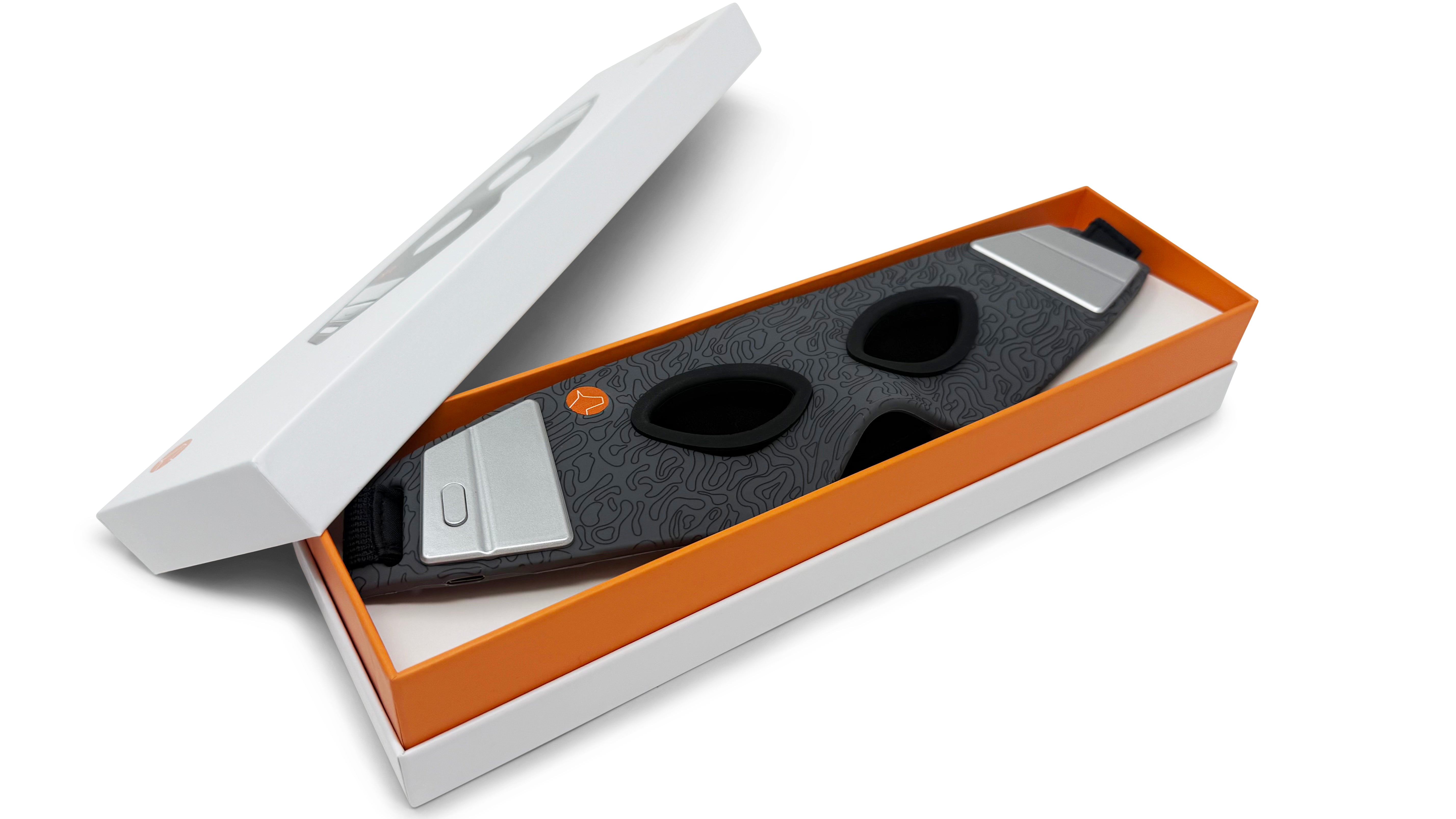 Lightweight and comfortable-to-wear wireless eye mask with built-in rechargeable battery.